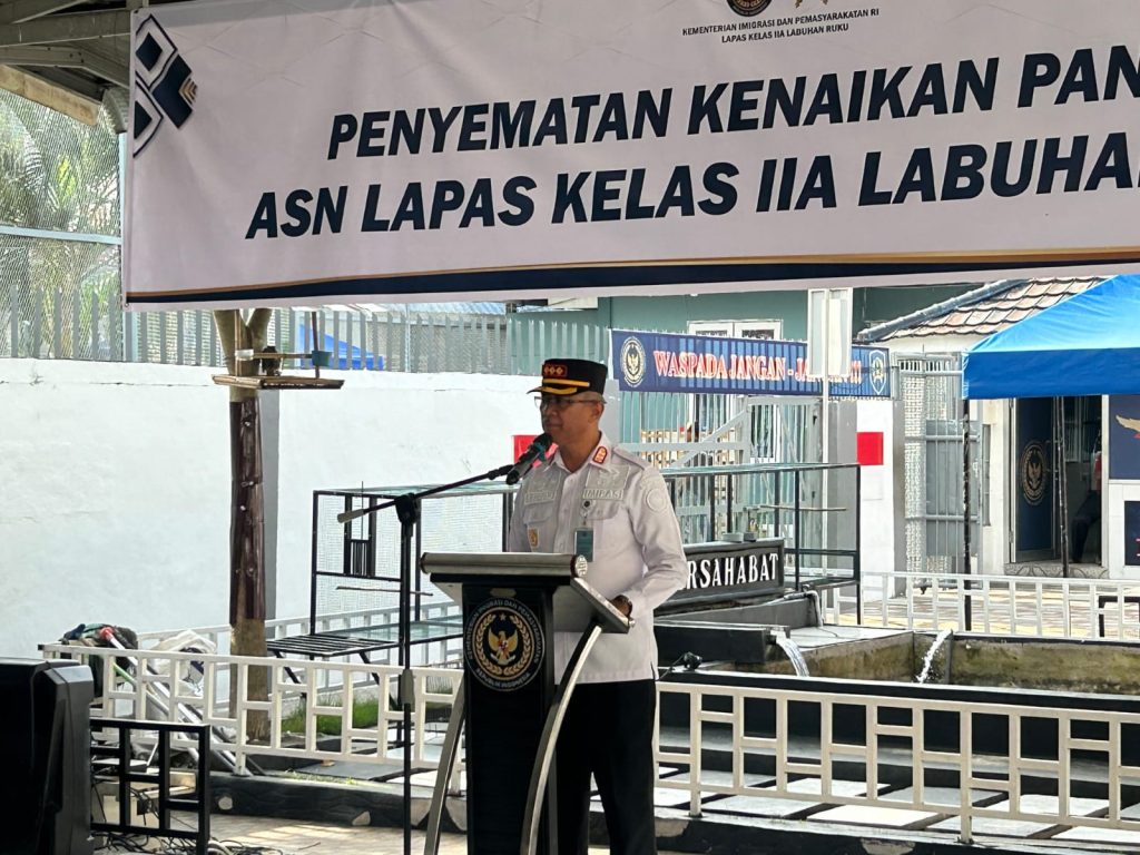 BATU BARA, hariandialog.co.id — Kepala Lembaga Pemasyarakatan (Kalapas) Kelas IIA Labuhan Ruku, Soetopo Berutu, menyematkan tanda kenaikan pangkat kepada dua orang pegawai Lapas Kelas IIA Labuhan Ruku, Rabu (8/5) pagi. Upacara penyematan tanda kenaikan pangkat tersebut berlangsung khidmat di Aula Lapas Labuhan Ruku dan dihadiri oleh pejabat struktural serta seluruh pegawai. Kegiatan ini merupakan bentuk apresiasi atas dedikasi dan kinerja pegawai yang telah menunjukkan loyalitas dan profesionalisme dalam melaksanakan tugas.
