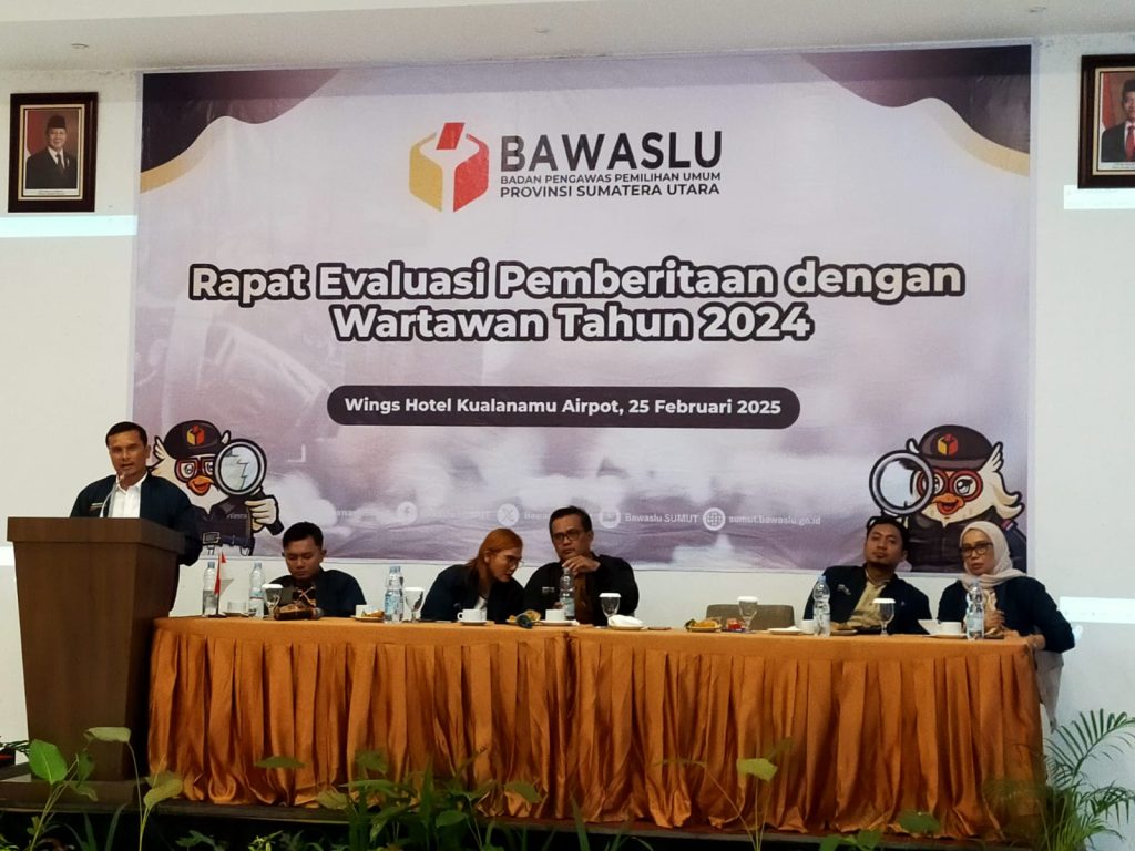 Deli Serdang, hariandialog.co.id.- Badan Pengawas Pemilu (Bawaslu) Provinsi Sumatera Utara (Sumut) menggelar Rapat Evaluasi Pemberitaan Pemilu 2024 bersama para wartawan Sumatera Utara pada Selasa, 25 Februari 2025, di Wing Hotel, Jalan Arteri Kualanamu No. 9, Deli Serdang.
