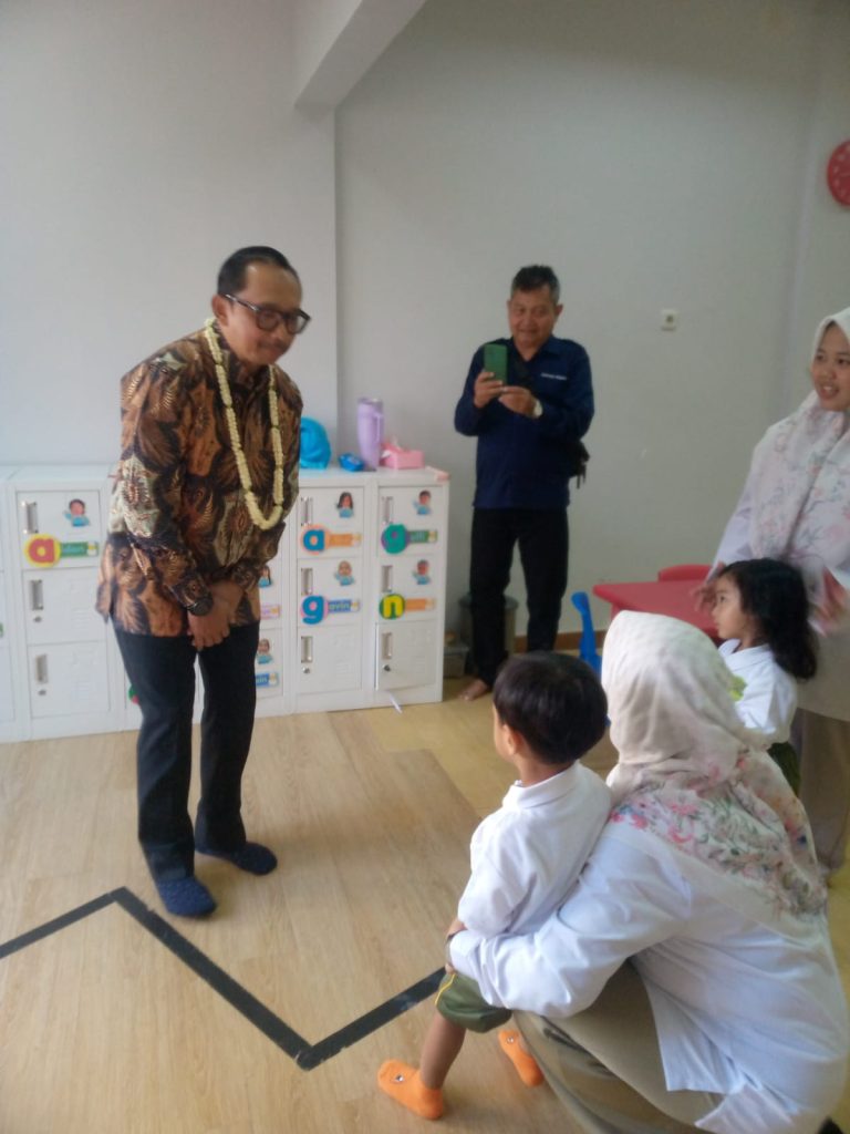 Kunjungan Bapak Juda Agung disambut oleh Kepala Sekolah TK, SD, SMP, dan SMA beserta dewan guru. Yang langsung menuju ruang kelas menyapa para siswa.