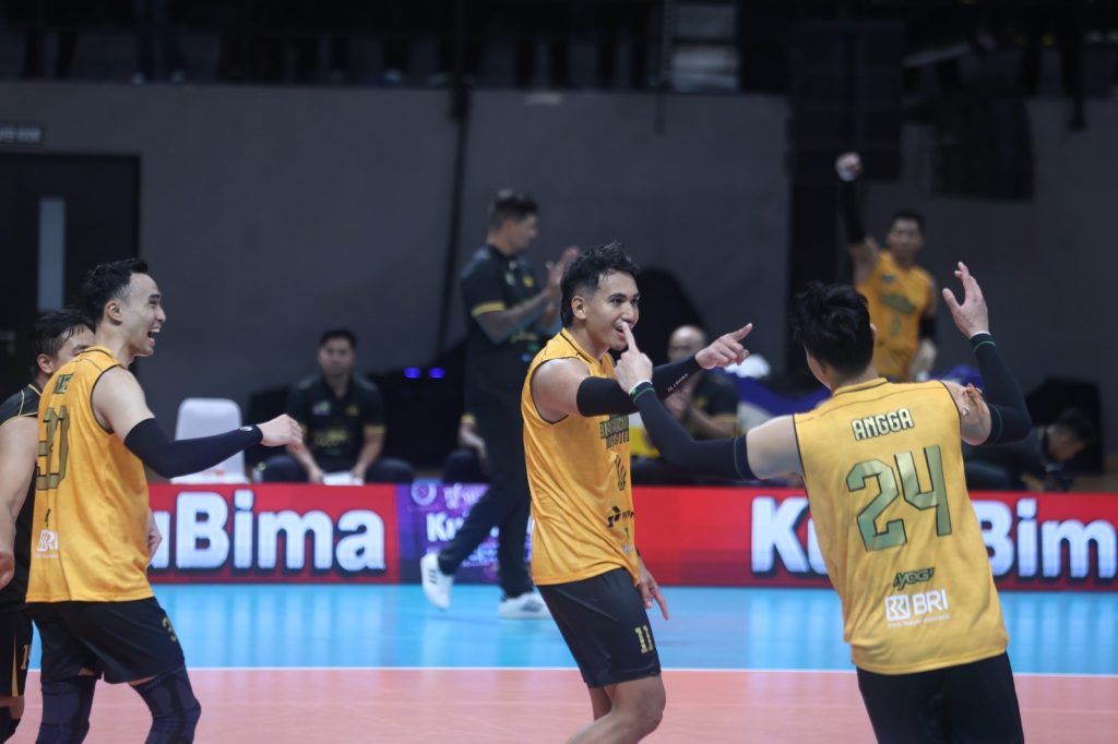 Medan Falcons Tirta Bhagasi memberikan tekanan dan mampu menjaga jarak poin hingga memasuki fase akhir set. Namun, ketenangan dan disiplin permainan membuat Bhayangkara Presisi berhasil mencuri momentum di poin-poin krusial untuk menutup set pertama dengan keunggulan 25-23.