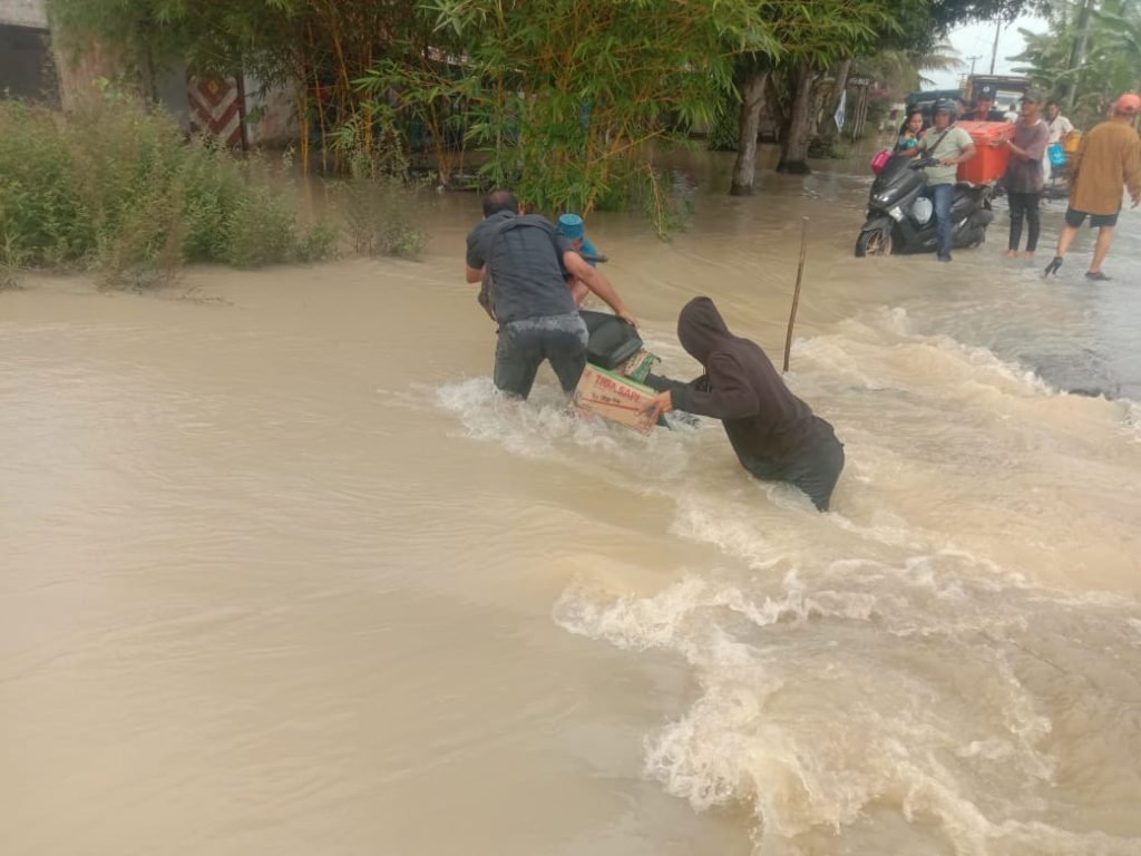 Batu Bara, hariandioalog.co.id Debit air meningkat pada Senin30-oktober-2023 pukul 03.00 wib,intensitas hujan yang cukup tinggi yang terjadi di kabupaten batu bara menyebabkan benteng sungai pecah di dusun perkubuan Desa Sei Buah Keras menyebabkan banjir merendam di 2 desa,Desa sei buah keras 6 rumah dan desa nenasiam 35 rumah, yang mengakibatkan terendam nya rumah, sawah, lahan pertanian, lahan palawija dan lahan perkebunan di kecamatan Medang deras, kabupaten batu bara.