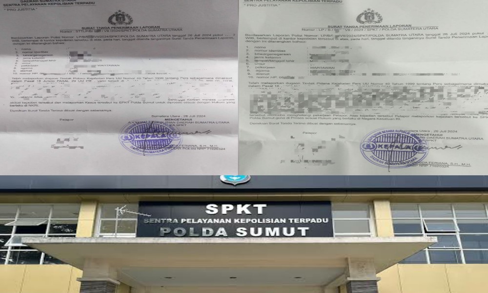 Setelah memberikan penjelasan dalam konseling kepada beberapa petugas di Sentra Pelayanan Kepolisian Terpadu (SPKT) Polda Sumut, Laporan Pengaduan para wartawan pun diterima, diperkuat dengan bukti surat, di antaranya Nomor LP/B/9##/VII/2024/SPKT/Polda Sumatera Utara dan LP/B/9##/VII/2024/SPKT/Polda Sumatera Utara, di antaranya atas dugaan tindak pidana kejahatan Pers sesuai Undang Undang Nomor 40 Tahun1999 Tentang Pers sebagai mana dimaksud Pasal 18 Jo Pasal 29 Undang Undang ITE.