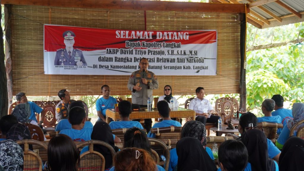 Langkat || Kapolres Langkat, AKBP David Triyo Prasojo, SH, SIK, MSi, menghadiri deklarasi Relawan Anti Narkoba serta peluncuran pos relawan anti narkoba di Desa Namosialang, Kecamatan Batang Serangan, Kabupaten Langkat. Acara yang berlangsung di Pantai Citra Desa Namosialang ini dimulai pukul 10.00 WIB dan dihadiri oleh berbagai tokoh pemerintah, instansi terkait, dan masyarakat.