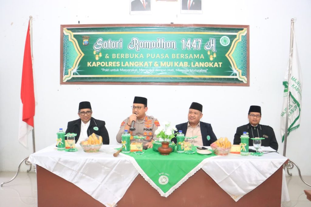 Dalam rangka mengisi Bulan Suci Ramadhan 1447 Hijriah, Polres Langkat menggelar kegiatan Safari Ramadhan dan buka puasa bersama Majelis Ulama Indonesia (MUI) Kabupaten Langkat, Senin (23/2/2026).
