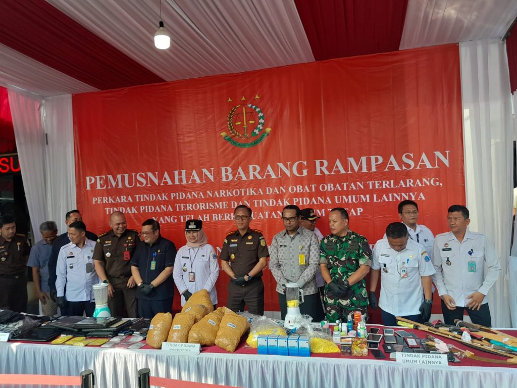 Barang bukti yang dimusnahkan tersebut atas perkara yang sudah diputus pengadilan dan juga sudah memiliki kekuatan hukum tetap (inkracht). Barang bukit narkotika yang dimusnahak, terdiri dari 140 perkara, berupa ganja dan tembakau sintesis 12,8 Kg, sabu-sabu 0,78 Kg, ekstasi 243 butir dan berbagai macam alat hisap, bong,pipet,korek api dan barang elektronik.