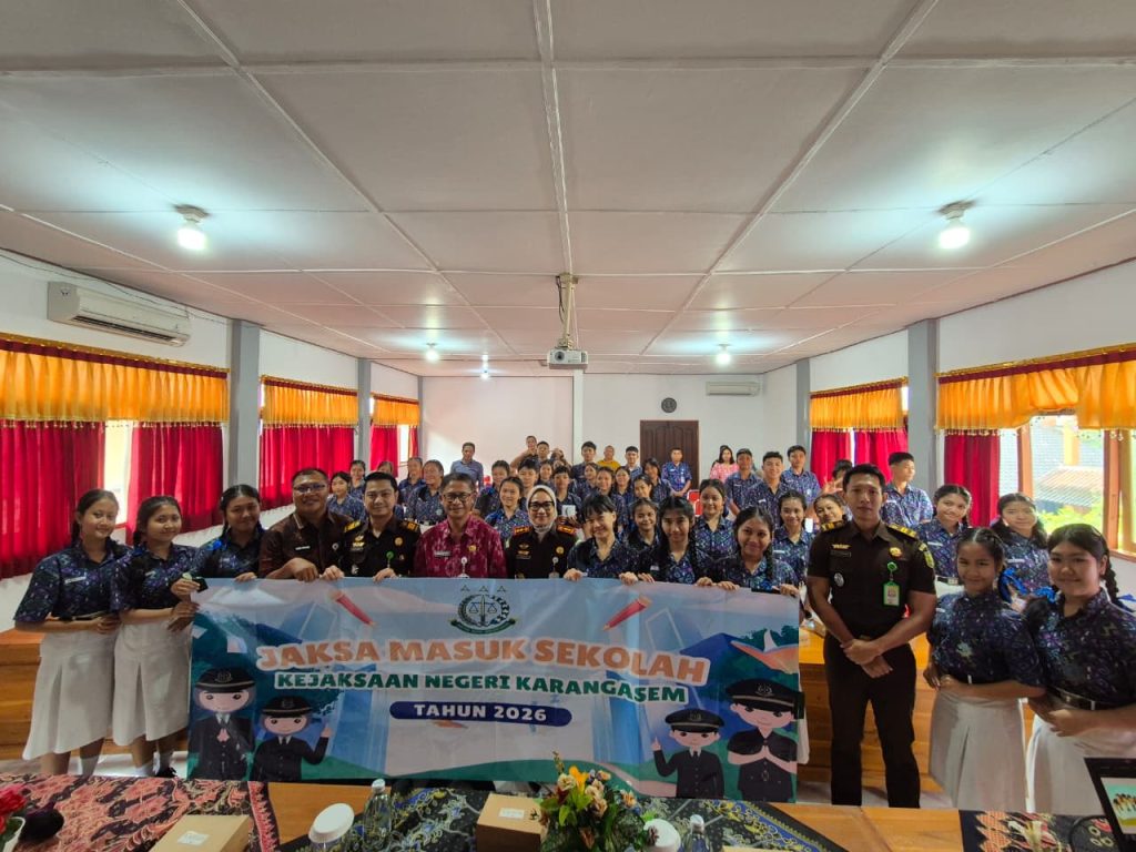 KARANGASEM, hariandialog.co.id – Kejaksaan Negeri Karangasem mengkampanyekan gerakan Stop Bullying melalui program Jaksa Masuk Sekolah (JMS) di SMP Negeri 2 Amlapura, Selasa (24/2/2026). Penyuluhan hukum tersebut diikuti 40 siswa dan menghadirkan langsung Kepala Kejaksaan Negeri Karangasem, Shinta Ayu Dewi RR, sebagai narasumber utama.