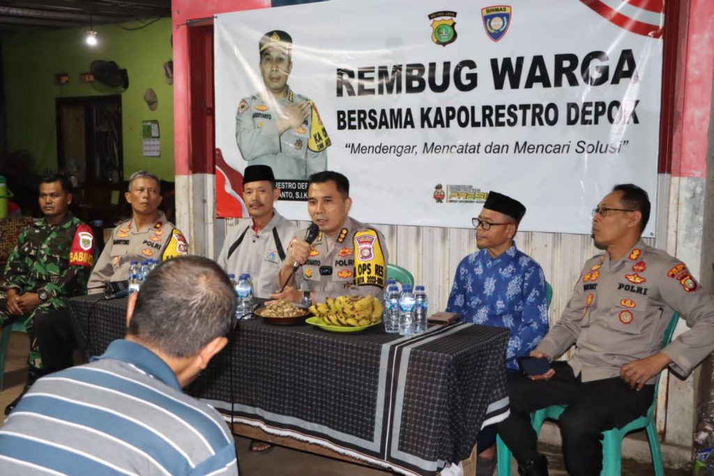 Plh. Kapolres Metro Depok Kombes Pol. Ardiyanto dalam sambutannya menyampaikan “Kehadiran kami untuk mendengar keluh kesah warga, karena disini yang hadir merupakan perwakilan, dimohon nantinya untuk memberi tahukan ke warga yang lain”. Ujarnya.