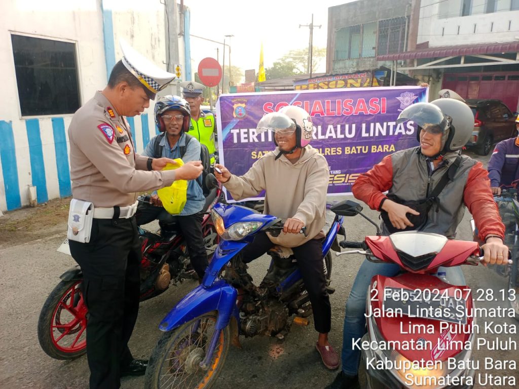 Ada pun ikut serta dalam pelaksanaan ini antara lain AKP HW SIAHAAN (Kasat Lantas Polres Batu Bara yang didampingi Para KBO Satlantas Polres Batu Bara Para Kanit Satlantas Polres Batu Bar dan Personil Satlantas Polres Batu Bara Kegiatan yang dilaksanakan Membagikan Gantungan kunci yang bertuliskan himbauan himbauan tertib berlalu lintas kepada penggguna jalan.Menghimbau dan Memberikan Edukasi untuk sadar tertib berlalu lintas.Mensosialisasikan dan Edukasi Tertib Berlalu lintas terhadap pengguna jalan dalam hal ini Penggunaan wajib Helm SNI setiap Berkendara baik pengendara dan yang dibonceng.Tidak Menggunakan Knalpot Brong.Berjalan disebelah kiri dan diatas trotoar
