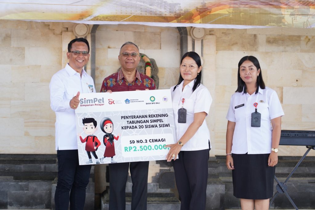 Selain itu, dilakukan pembukaan top up rekening Simpanan Pelajar (SimPel) kepada total 20 siswa dari SD 2 Cemagi, total dana Rp2.500.000, dan 20 siswa SMP Negeri 7 Mengwi total dana Rp2.500.000,-. PT BPD Bali memberikan dua tempat sampah bagian dari corporate social responsibility (CSR).