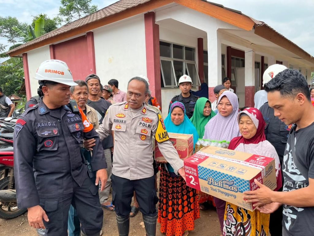 Anggota Polda Jabar, anggota Sat Brimob Polda Jabar serta anggota Polres Sukabumi segera mendatangi lokasi – lokasi yang terendam banjir, dan secara langsung menyampaikan bantuan kepada warga yang terdampak bencana.