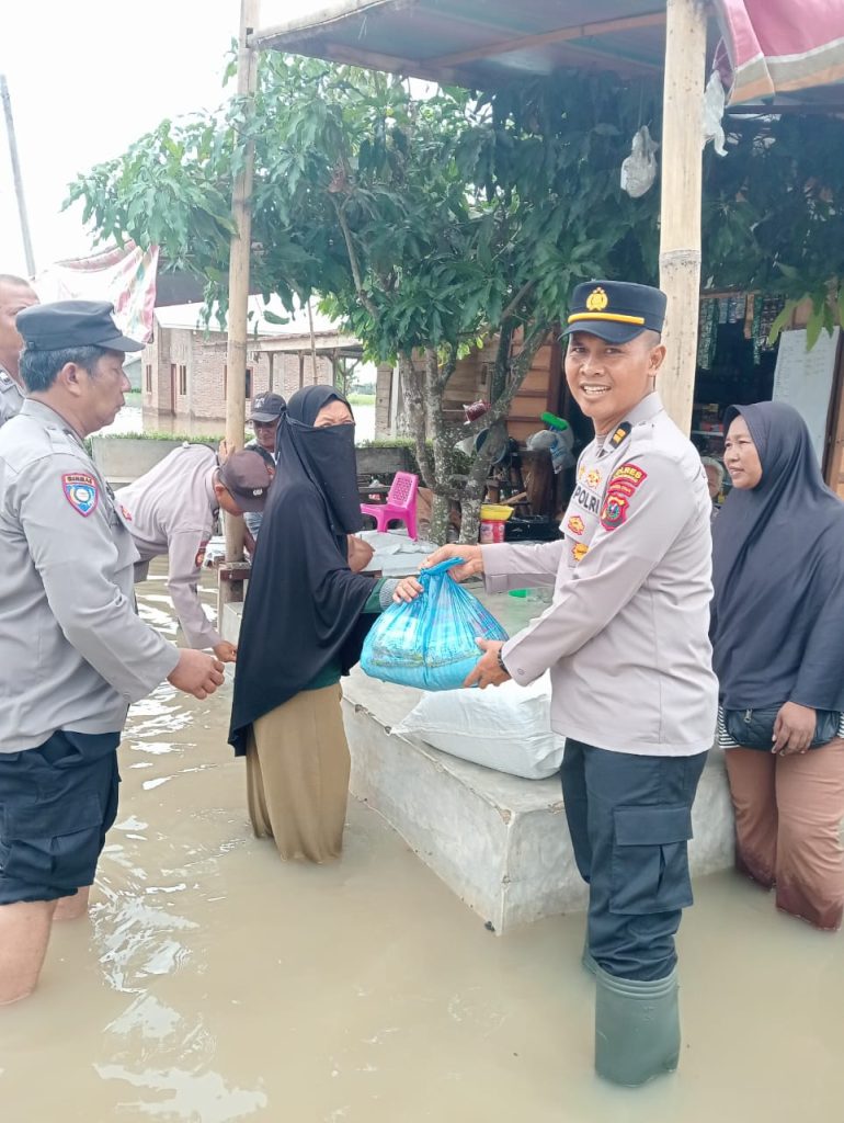 Wakapolsek Tanjung Beringin IPTU ZulfAN Ahmadi SH, MH, menyampaikan Bantuan yang disalurkan berupa beras, Indomie, dan telur. pemberian bantuan ini dimaksudkan untuk meringankan beban korban banjir serta mendorong mereka tetap tabah, ikhlas, dan bersabar dalam menjalani cobaan yang datang dari Allah SWT.