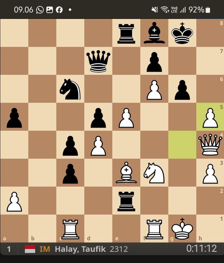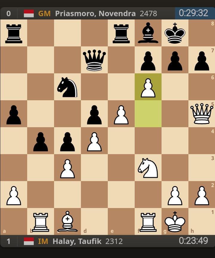 IM Taufik Halay salah satu anggota Dream Team Catur Indonesia bersama Susanto Megaranto dan IM Tirta Chandra Purnama kembali menunjukkan kelasnya dengan mengorbankan Gajahnya dilangkah ke- 26.gxh5 ( LIHAT DIAGRAM 2).