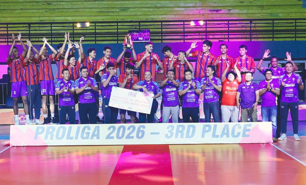 Yogyakarta, hariandialog.co.id – Surabaya Samator akhirnya memastikan diri sebagai peringkat ketiga putra Proliga 2026. Dalam laga penentu atau leg ketiga yang berlangsung di GOR Amongrogo, Yogyakarta, Kamis (23-04-2026) malam, tim asuhan Rodolfo Sanchez sukses menumbangkan Jakarta Garuda Jaya 3-0 (25-19, 25-17, 25-20).
