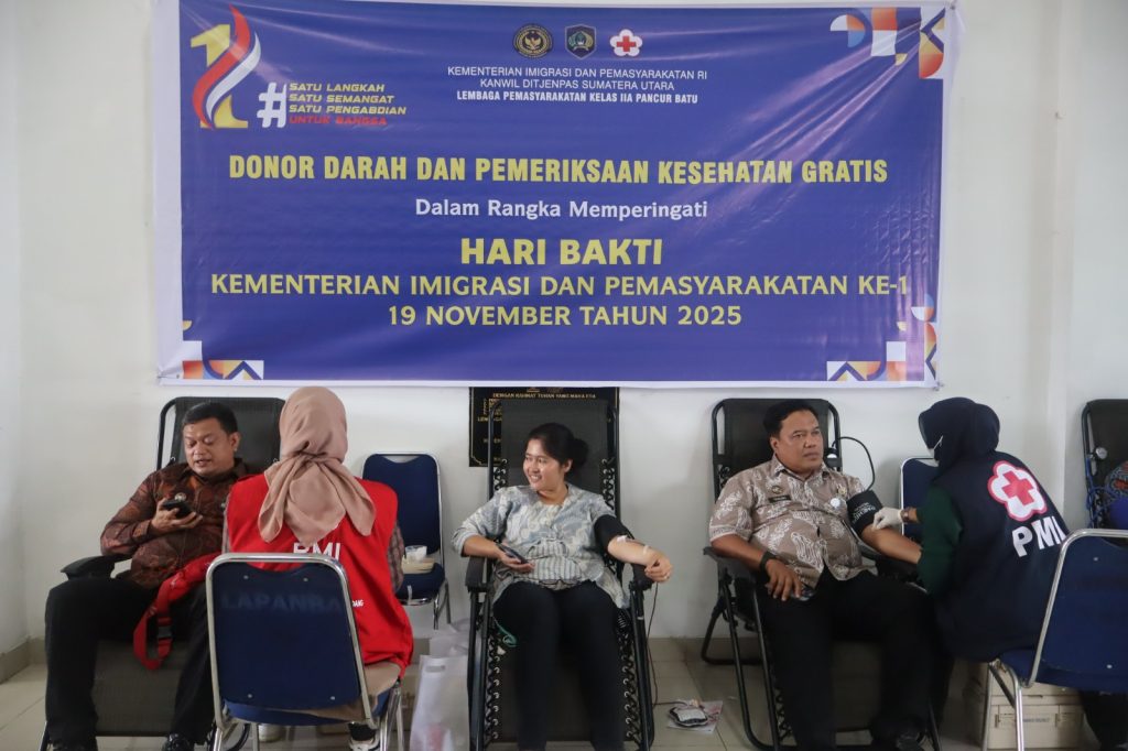 Pancur Batu — hariandialog.co.id Dalam rangka memperingati Hari Bakti Kementerian Imigrasi dan Pemasyarakatan RI yang ke-1 yang jatuh pada tanggal 19 November 2025, Lembaga Pemasyarakatan Kelas IIA Pancur Batu bekerja sama dengan Palang Merah Indonesia (PMI) menggelar kegiatan donor darah dan pemeriksaan kesehatan gratis bagi seluruh petugas serta masyarakat sekitar.