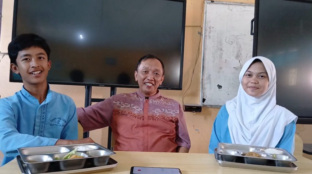 Alhamdulillah di hari Jum’at, 21 November 2025 akhirnya berjalan kembali inilah tanggapan Budi Hermawan, S.Pd wakepsek SMP Negeri 2 Batujajar. Syukur “Alhamdulillah” MBG sudah berjalan kembali dan anak-anak menyambut dengan bahagia .Program Makan Bergizi Gratis kembali berjalan setiap harinya. Kami sangat senang karena Siswa jadi terbantu dengan adanya ini.