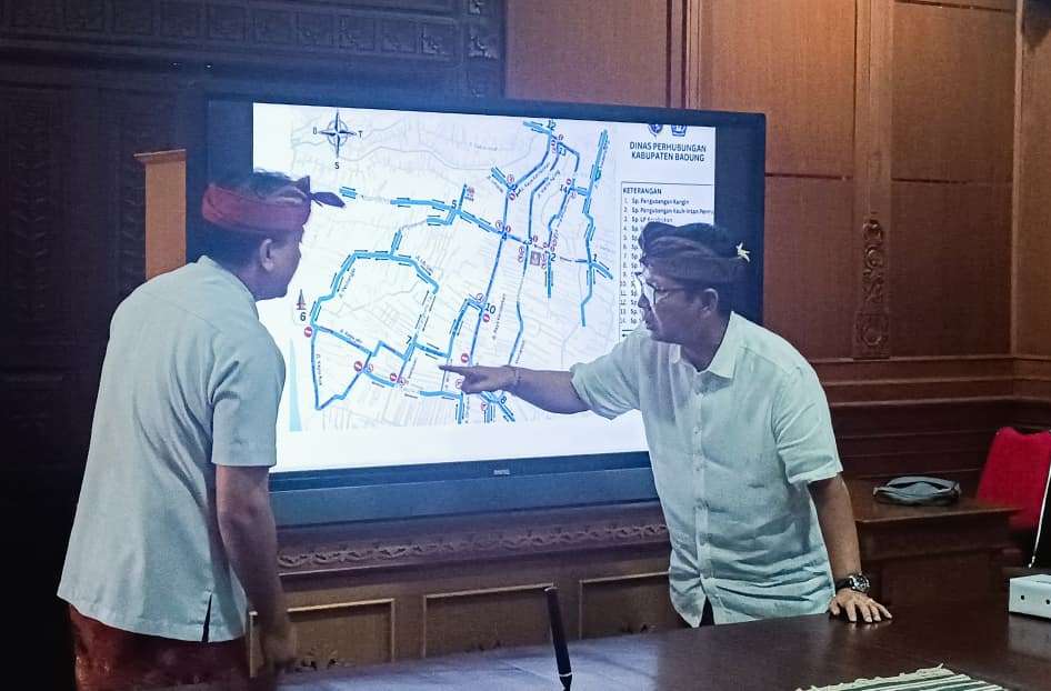 Bupati Badung, I Wayan Adi Arnawa, didampingi Sekda Surya Suamba, Kanit Lantas Polres Badung dan Polresta Denpasar, Sekretaris PUPR Kab. Badung, Kamis (8/1) di Puspem Badung apresiasi kinerja Dinas Perhubungan Kab. Badung bersama Polres Badung dan Polresta Denpasar melakukna MRLL”Kebijakan rekayasa lalu lintas langkah strategis penting dijalankan dengan konsisten dan terukur. saya mengapresiasi kerja keras Dinas Perhubungan bersama kepolisian menerapkan rekayasa lalu lintas ini,“ ungkap Adi Arnawa. Dari laporan ia terima pelaksanaannya sudah mulai menunjukkan hasil positif mengurai kemacetan..